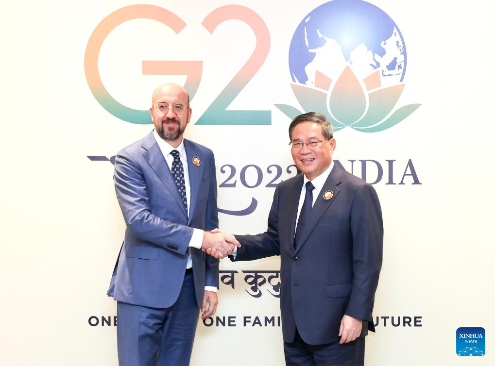 Chinese Premier Li Qiang meets with European Council President Charles Michel on the sidelines of the G20 summit in New Delhi, India, Sept. 10, 2023. (Xinhua/Yao Dawei)