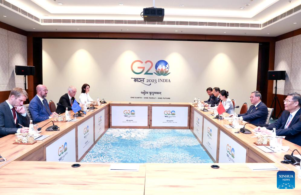 NEW DELHI, Sept. 10 (Xinhua) -- Lying at the opposite ends of Eurasia, there is no geopolitical conflict between China and Europe, let alone a fundamental conflict of interests, Chinese Premier Li Qiang said on Sunday.