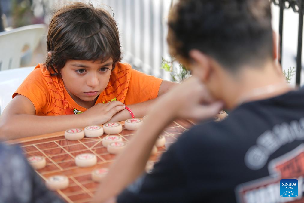 Young participants compete during the Lebanese-Chinese XiangQi Friendship Championship in Deir el Qamar, Mount Lebanon Governorate, Lebanon, on Sept. 10, 2023. A competition for Chinese chess, called XiangQi, organized by the XiangQi Committee in Lebanon, was held on Sunday in Deir el Qamar, a historic town in southern-central Lebanon, attracting about 70 Lebanese and Chinese fans of all ages. (Xinhua/Bilal Jawich)