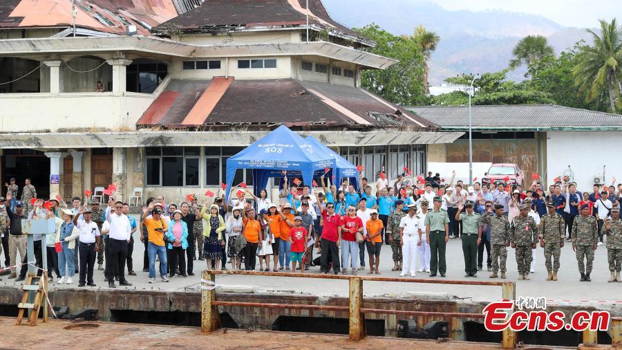People wave during a see-off ceremony at the port of Dili in Timor-Leste, Sept. 10, 2023. (Photo: China News Service/Gui Jiangbo)