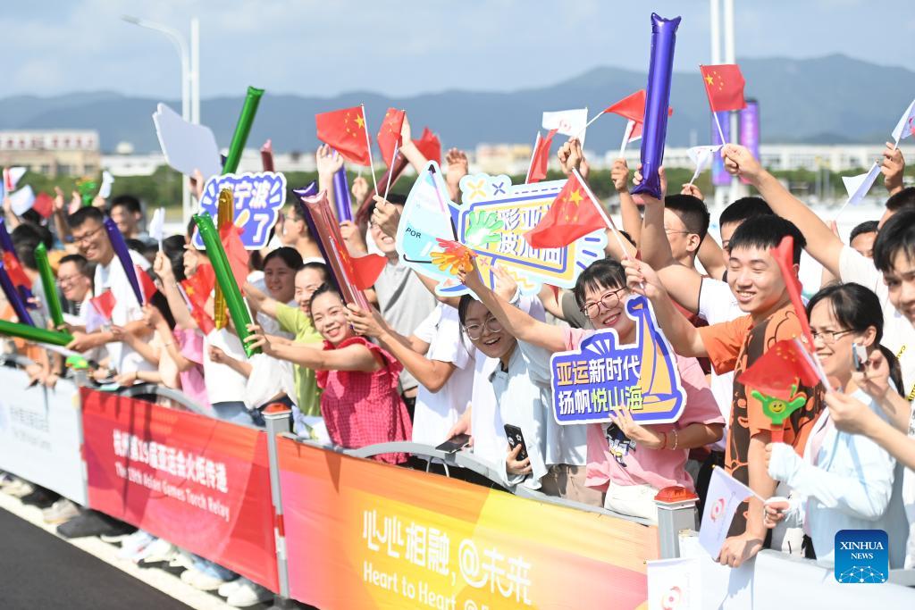 People watch the torch relay of the 19th Asian Games in Ningbo, east China's Zhejiang Province, Sept. 12, 2023. (Xinhua/Huang Zongzhi)