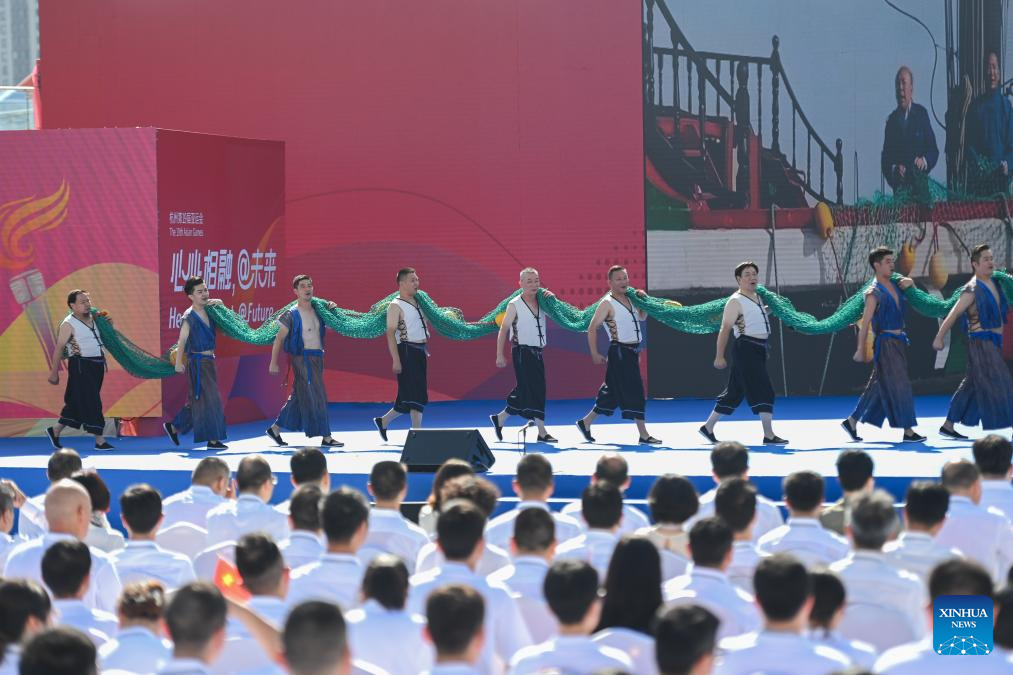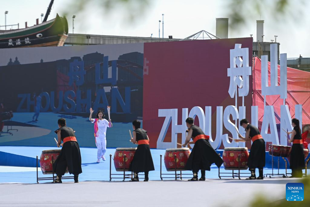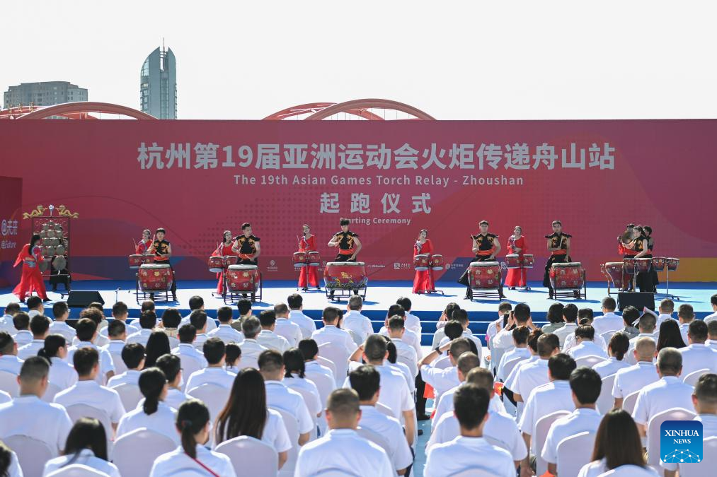 Actors perform during the starting ceremony of the torch relay of the 19th Asian Games in Zhoushan, east China's Zhejiang Province, Sept. 13, 2023. (Xinhua/Huang Zongzhi)