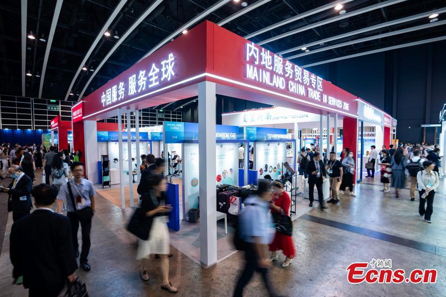 The "Mainland Service Trade Zone" in the exhibition area of the 8th Belt and Road Summit at Hong Kong Convention and Exhibition Center in the Hong Kong Special Administrative Region, Sept. 13, 2023. (Photo: China News Service/Hou Yu)