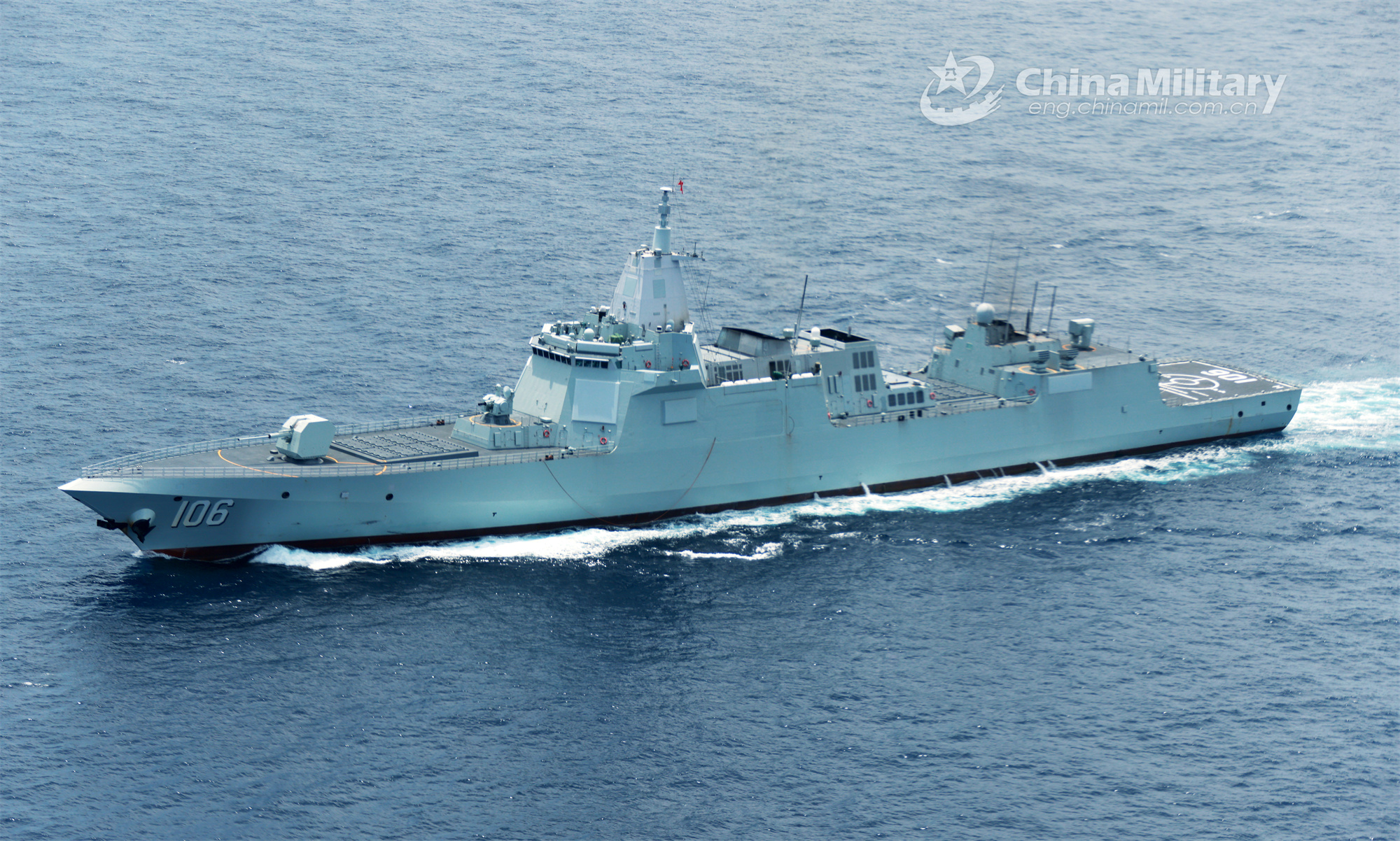 The guided-missile destroyer Yanan attached to a destroyer flotilla with the navy under the PLA Southern Theater Command steams in waters of the South China Sea during a coordinated offensive and defensive training drill in a real-combat environment. (eng.chinamil.com.cn/Photo by Huang Jiacheng)
