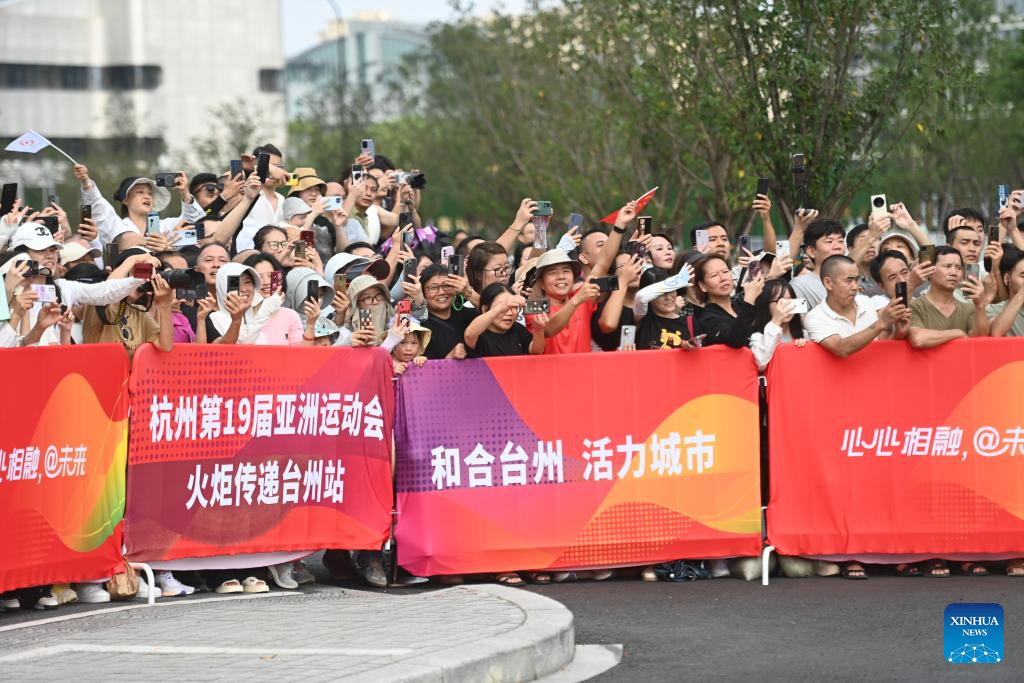 People watch during the torch relay of the 19th Asian Games in Taizhou, east China's Zhejiang Province, Sept. 14, 2023. (Xinhua/Huang Zongzhi)