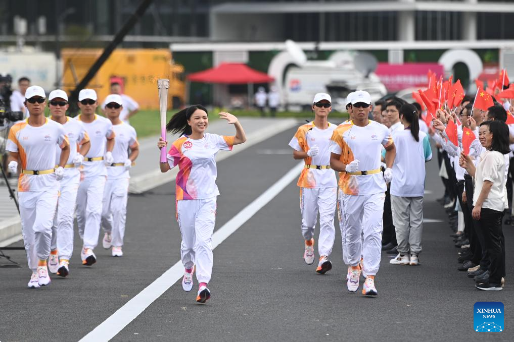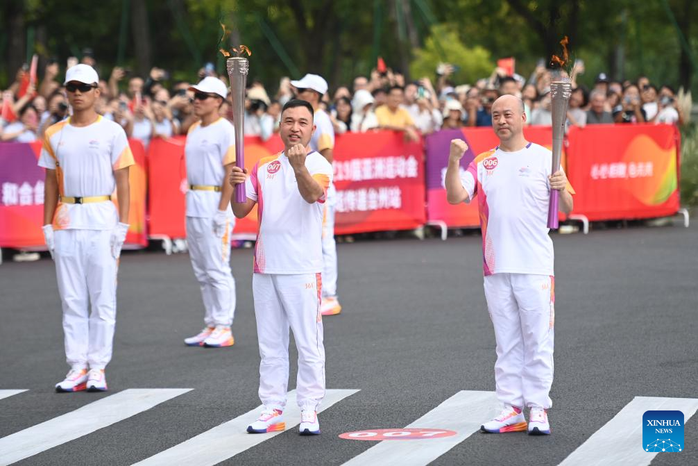 Photo taken on Sept. 14, 2023 shows the beginning ceremony of the torch relay of the 19th Asian Games in Taizhou, east China's Zhejiang Province. (Xinhua/Sun Fei)