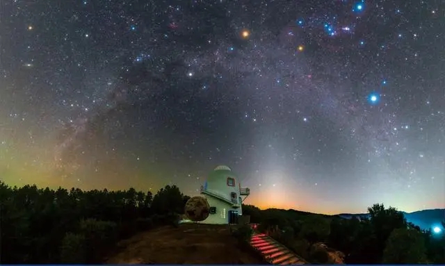 Nestled deep in the mountains of Xinhe village, Xiaohe township, Liuyang city, Hunan Province, the observatory spans 368 square meters, with its main building occupying 78.5 square meters. Its rotational dome opens to a 5-meter diameter round ceiling window for a large aperture professional astronomical telescope. On clear nights, visitors can observe planets, stars and nebulae through the telescope.