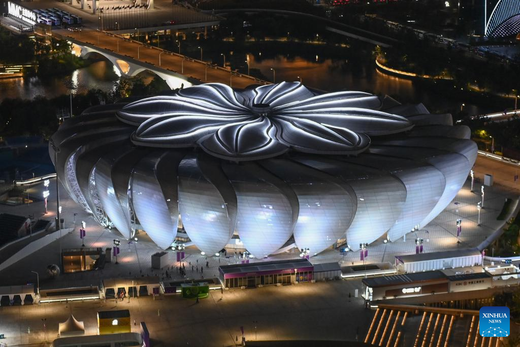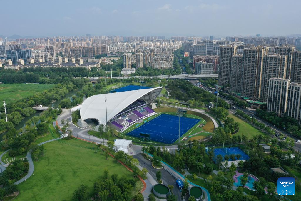 This aerial photo taken on Aug. 21, 2023 shows the Huanglong Sports Center in Hangzhou, east China's Zhejiang Province. (Xinhua/Huang Zongzhi)