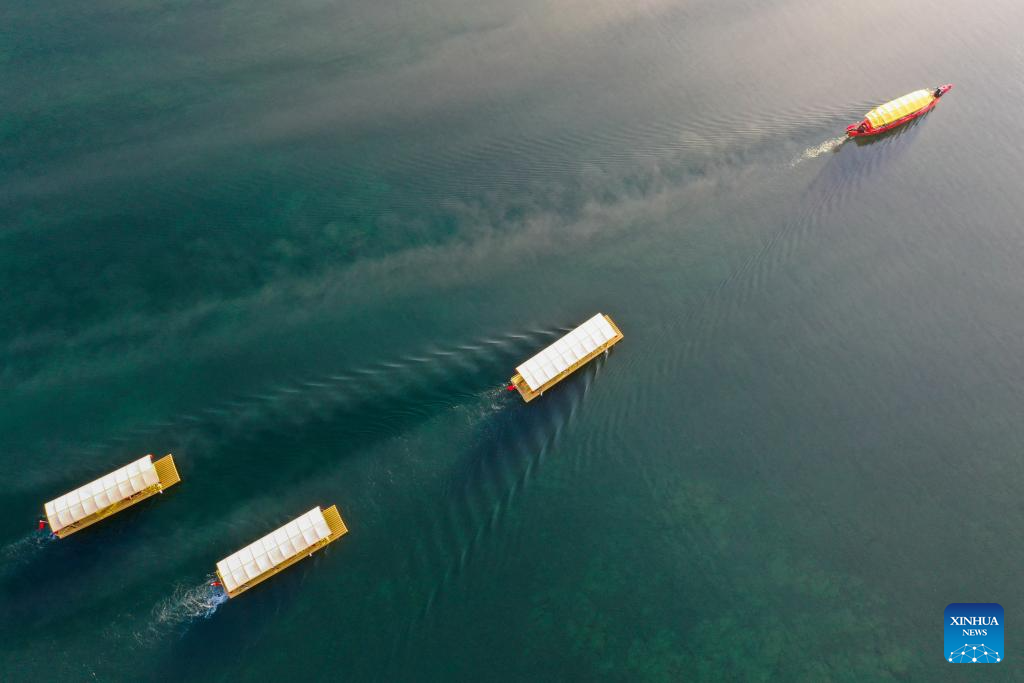 This aerial photo taken on Aug. 24, 2023 shows the Fuyang Water Sports Center in Hangzhou, east China's Zhejiang Province. (Xinhua/Xu Yu)