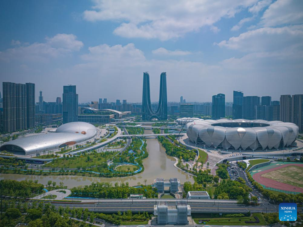 This aerial photo taken on June 28, 2023 shows Qianjiang new town in Hangzhou, east China's Zhejiang Province. (Xinhua/Huang Zongzhi)