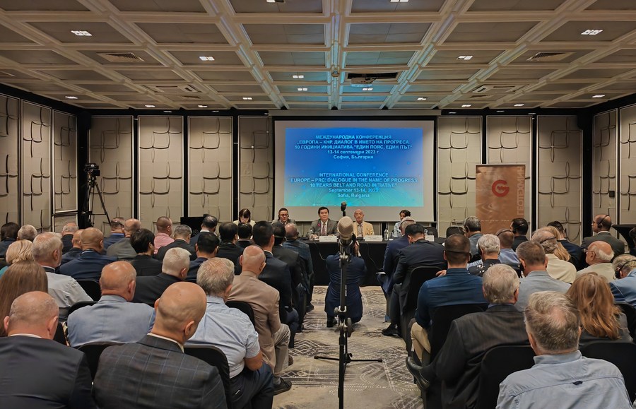An international conference focusing on cooperation between Europe and China within the framework of the Belt and Road Initiative (BRI) is held to mark the BRI's 10th anniversary in Sofia, Bulgaria, Sept. 13, 2023. (Xinhua/Liang Jianqiang)