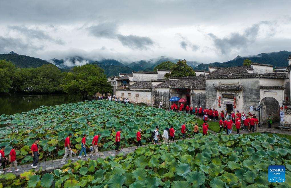 This aerial photo taken on Sept. 13, 2023 shows the Hongcun Village in Yixian County, Huangshan City of east China's Anhui Province. (Xinhua/Guo Chen)