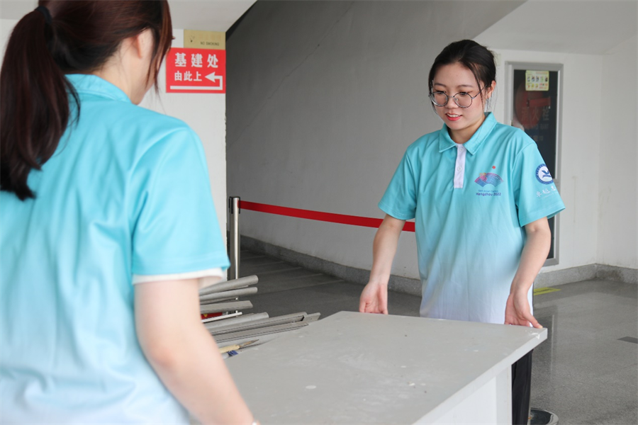 After preparing for various tasks, 319 student volunteers from Shaoxing University in Shaoxing, east China's Zhejiang Province, are eagerly awaiting the 19th Asian Games, which is scheduled to take place from Sept. 23 to Oct. 8 in Hangzhou, capital of Zhejiang Province.