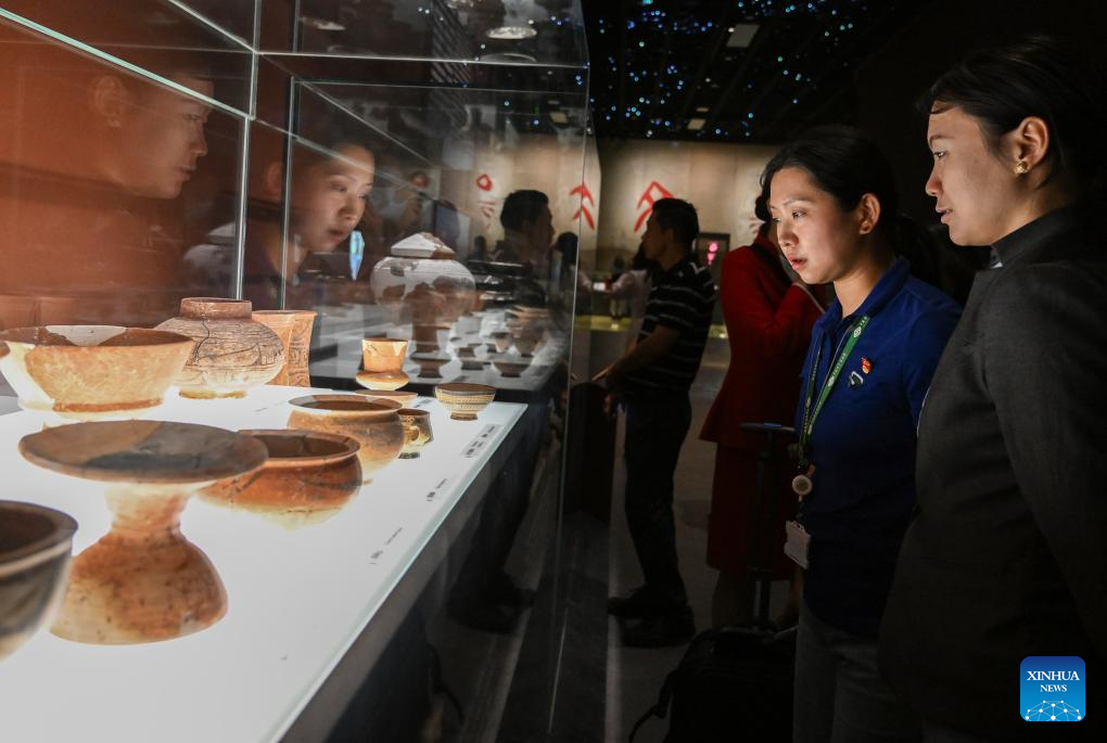 People visit the Chinese Archaeological Museum in Beijing, capital of China, Sept. 15, 2023. The Chinese Archaeological Museum was opened to the public on Friday. (Xinhua/Li He)