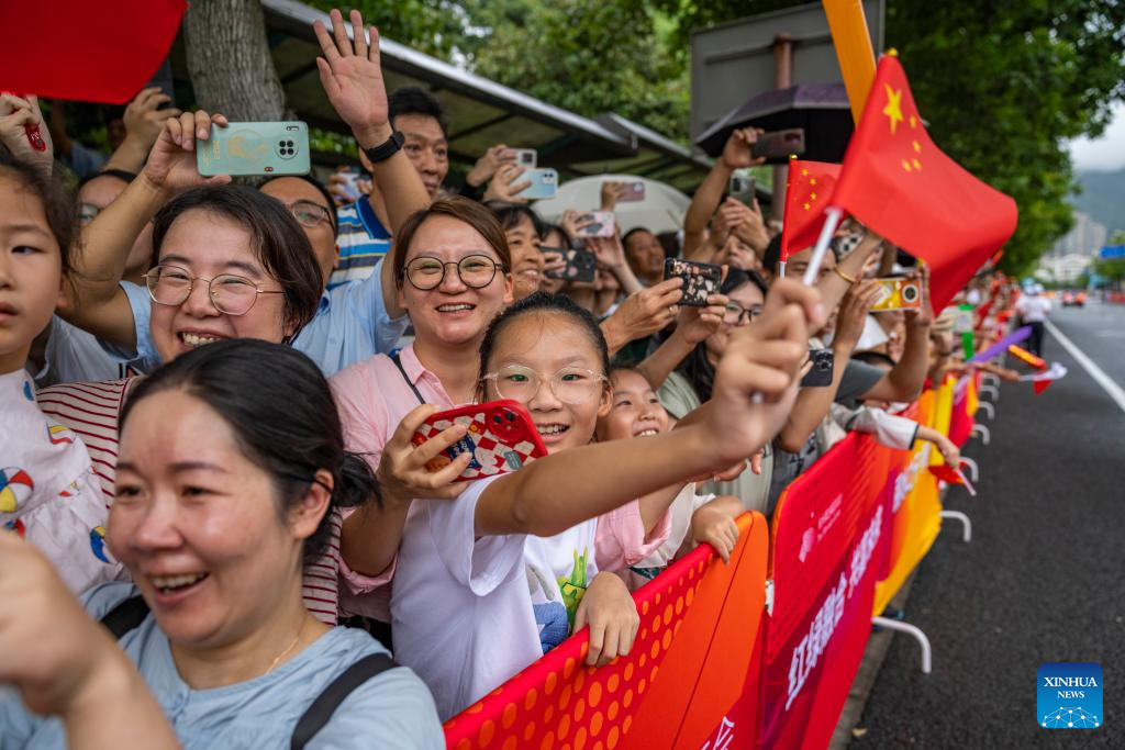 People watch the torch relay of the 19th Asian Games in Lishui, east China's Zhejiang Province, Sept. 16, 2023. (Xinhua/Sun Fei)