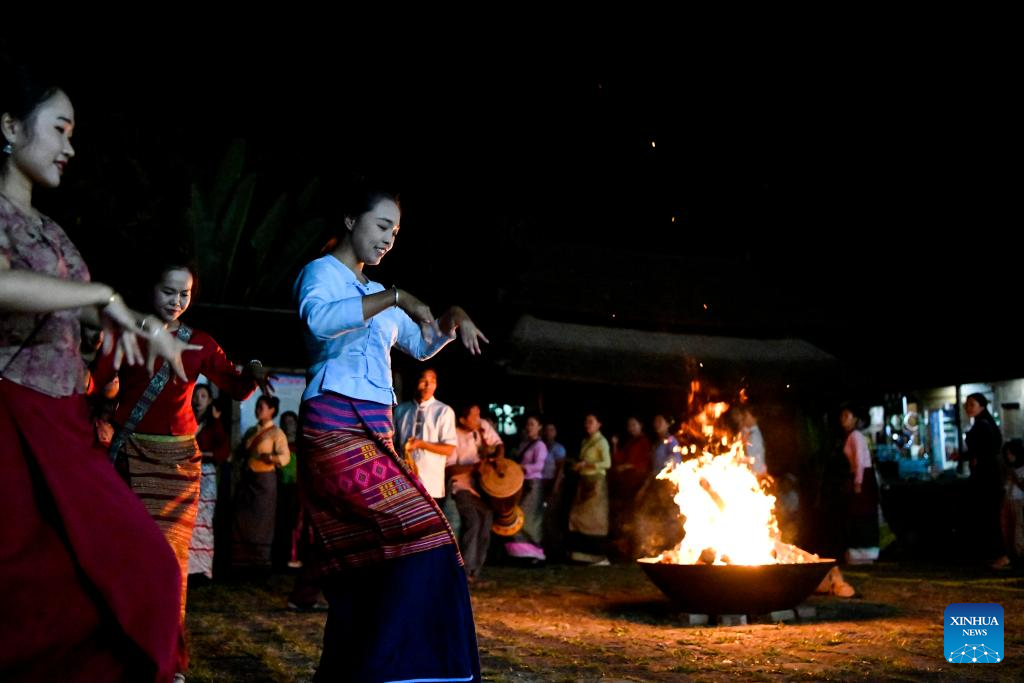 People dance in Jingmai Village of Pu'er City, southwest China's Yunnan Province, Sept. 17, 2023. (Xinhua/Tang Rufeng)