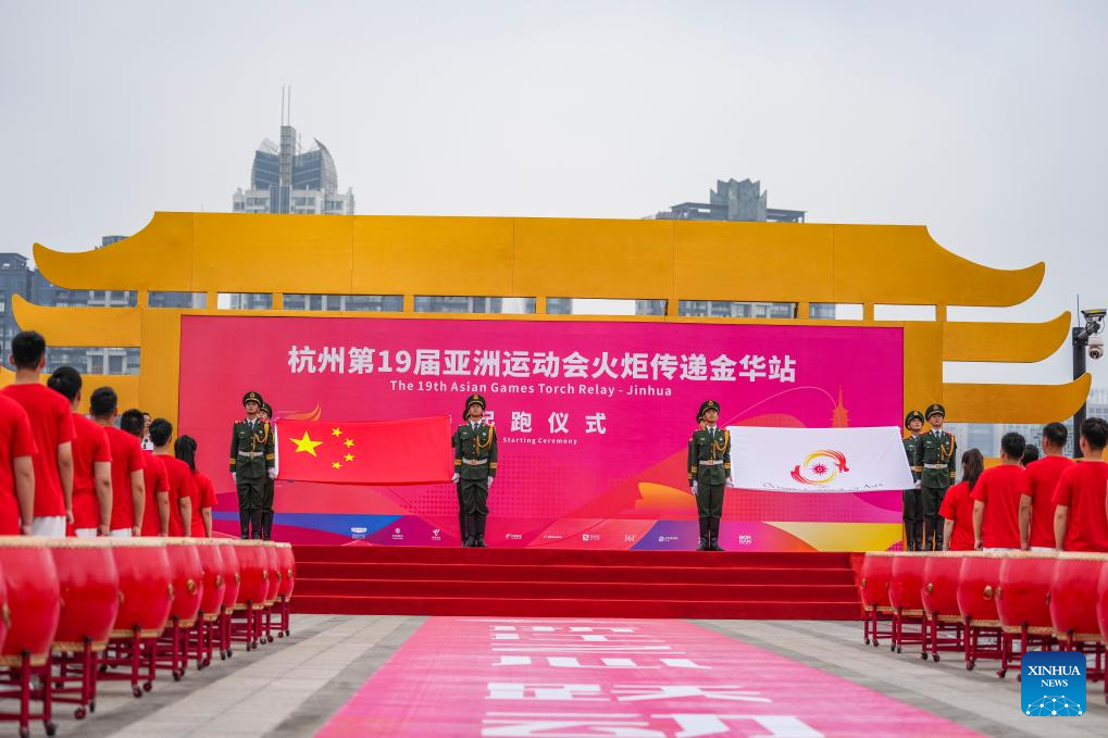 Photo shows the starting ceremony of the torch relay of the 19th Asian Games in Jinhua, east China's Zhejiang Province, Sept. 17, 2023. (Xinhua/Sun Fei)