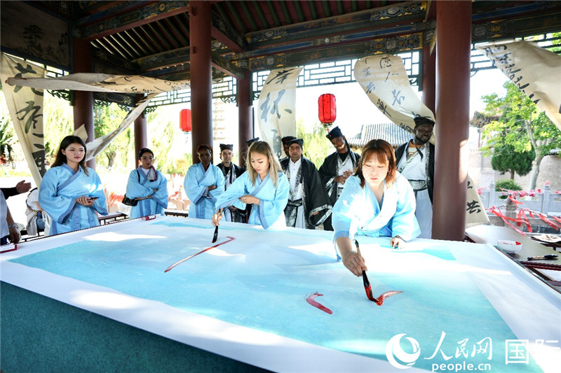 In a pavilion, the contestants wrote down their favorite Chinese characters on paper. Although many of them were using a brush for the first time, they became immersed in the world of ink and brush, intoxicated by the charm of traditional Chinese calligraphy.