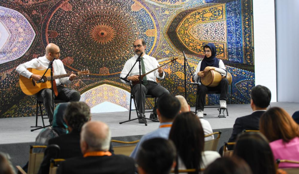 A band from Iran performs at the opening ceremony of the Cultural Exhibition of Countries along the Belt and Road during this year's CIFTIS in Beijing.(Photo by Ju Huanzong/Xinhua)