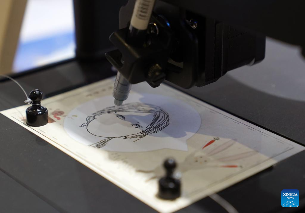 A painting robot is seen at the stand of Peking University at the 23rd China International Industry Fair in Shanghai, east China, Sept. 20, 2023. More than 800 projects from over 80 universities are displayed at the exhibition area of universities at the ongoing 23rd China International Industry Fair. (Xinhua/Liu Ying)
