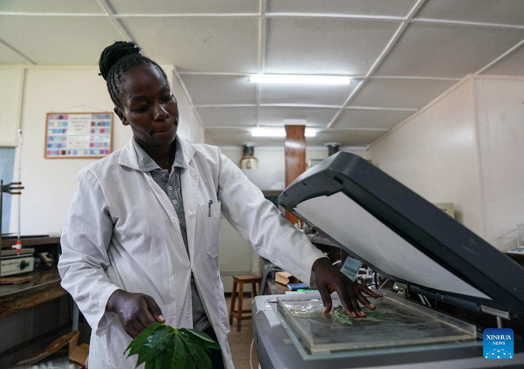 A Kenyan graduate student works at the China-Kenya Belt and Road Joint Laboratory on Crop Molecular Biology at Egerton University in Nakuru County, Kenya, on Sept. 18, 2023. (Xinhua/Han Xu)