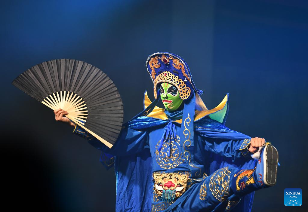 An actor performs during a celebration to mark the upcoming Chinese Mid-Autumn Festival at the Gardens of the World in Berlin, Germany, Sept. 23, 2023. (Xinhua/Ren Pengfei)