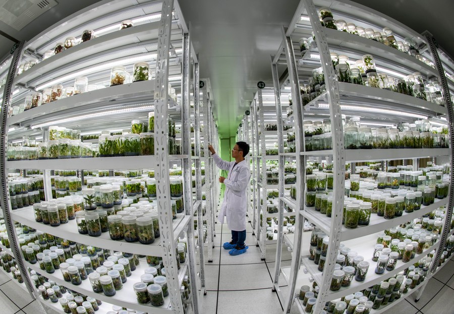 File photo shows the vitro storage room at the Germplasm Bank of Wild Species in Kunming, southwest China's Yunnan Province. (Xinhua/Jiang Wenyao)
