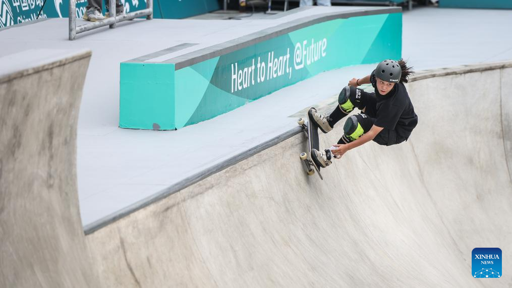 Mao Jiasi of China competes during the Women's Park Final of Skateboarding at the 19th Asian Games in Hangzhou, east China's Zhejiang Province, Sept. 25, 2023. (Xinhua/Song Yanhua)