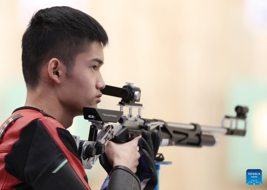 Sheng Lihao of China competes during Men's Team 10m Air Rifle of Shooting at the 19th Asian Games in Hangzhou, east China's Zhejiang Province, Sept. 25, 2023. (Xinhua/Jia Haocheng)