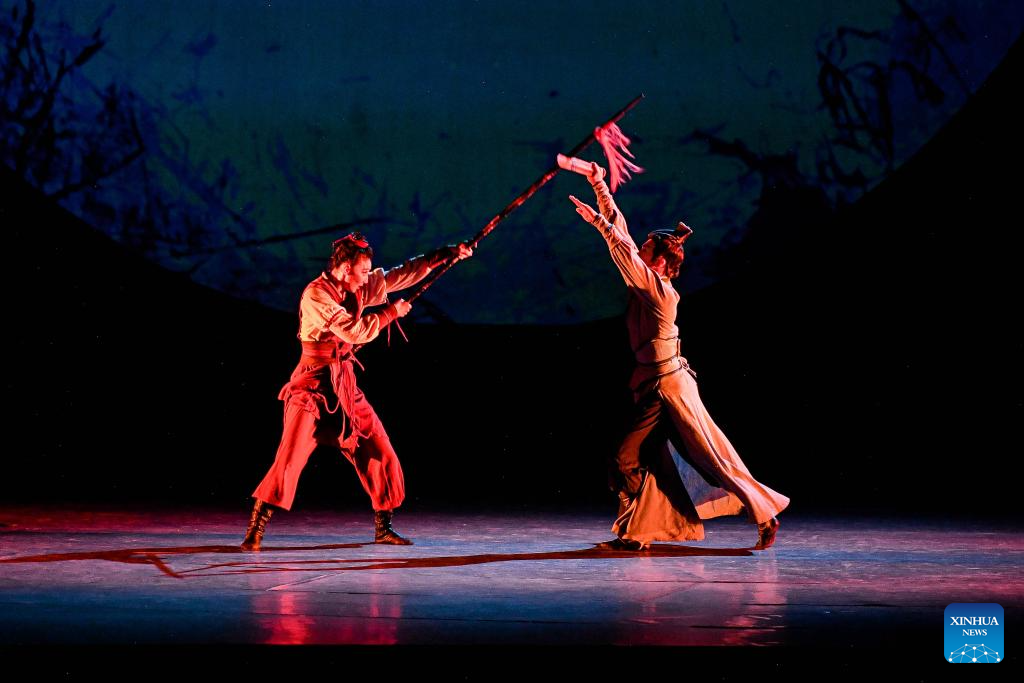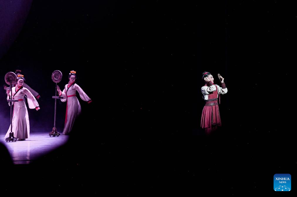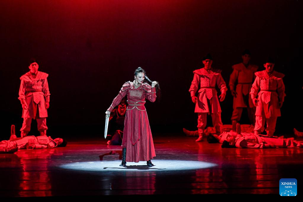 Artists from China perform Chinese dance drama "Mulan" in Boston, Massachusetts, the United States, on Sept. 23, 2023. The Chinese dance drama "Mulan" was staged in a theatre in Boston on Sept. 23, and will have shows on tour in Washington, D.C. thereafter. This was the debut of the drama in the United States, and over 1,600 audiences watched the performance. (Photo by Zhu Ziyu/Xinhua)