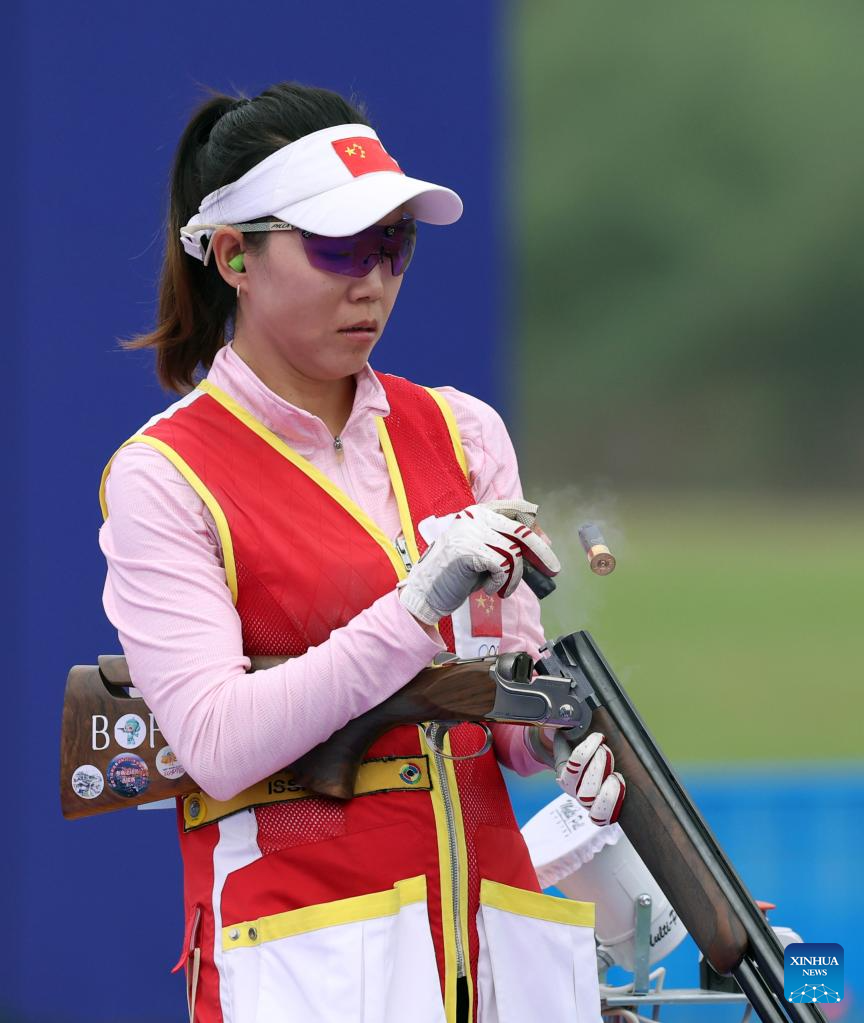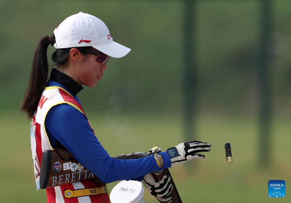Gao Jinmei of China competes during the Phase 1 of Women's Team of Skeet-75 at the 19th Asian Games in Hangzhou, east China's Zhejiang Province, Sept. 26, 2023. (Xinhua/Du Xiaoyi)