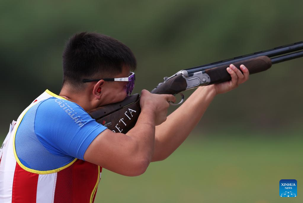 Wu Yunxuan of China competes during Men's Team Skeet-75 of Shooting at the 19th Asian Games in Hangzhou, east China's Zhejiang Province, Sept. 26, 2023. (Xinhua/Du Xiaoyi)