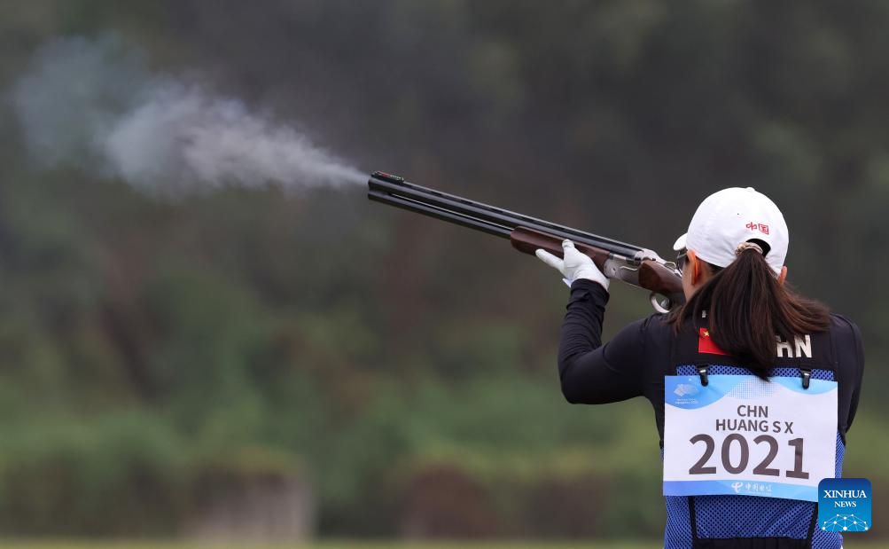 Huang Sixue of China competes during the Phase 1 of Women's Team of Skeet-75 at the 19th Asian Games in Hangzhou, east China's Zhejiang Province, Sept. 26, 2023. (Xinhua/Du Xiaoyi)