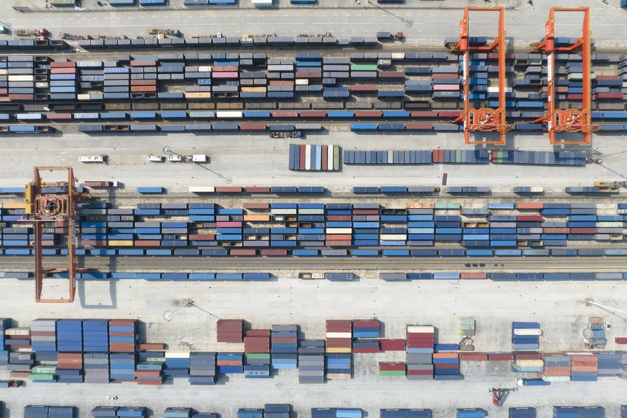 This aerial photo taken on Sept. 7, 2023 shows a view of Xi'an International Port in Xi'an, northwest China's Shaanxi Province.(Xinhua/Shao Rui)