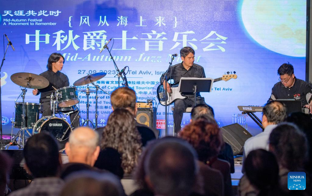 Musicians perform during a Mid-Autumn Festival themed event at the China Cultural Center in Tel Aviv, Israel, Sept. 27, 2023. Various celebrations are held across the world with the approaching of Mid-Autumn Festival. (Xinhua/Chen Junqing)