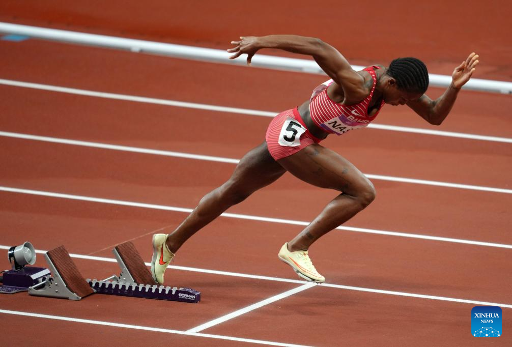 Salwa Eid Naser Naser of Bahrain competes during the Women's 400m Final of Athletics at the 19th Asian Games in Hangzhou, east China's Zhejiang Province, Sept. 30, 2023. (Xinhua/Jiang Wenyao)
