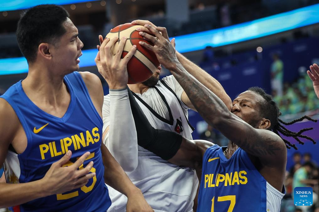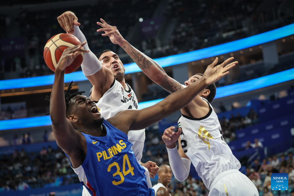 Athletes compete during the Men's Preliminary Round Group match of Basketball between Jordan and Philippines at the 19th Asian Games in Hangzhou, east China's Zhejiang Province, Sept. 30, 2023. (Xinhua/Pan Yulong)