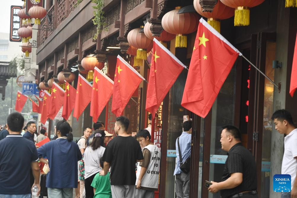 People visit the the Fuzi (Confucius) Temple in Nanjing, east China's Jiangsu Province, Sept. 29, 2023. Friday marks the traditional Mid-Autumn Festival this year in China, which is celebrated in diverse ways, ranging from family reunions with big feasts to public gatherings featuring traditional ceremonies, performances and Mid-Autumn gala. (Photo by Yang Suping/Xinhua)