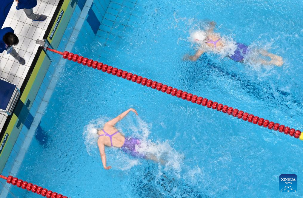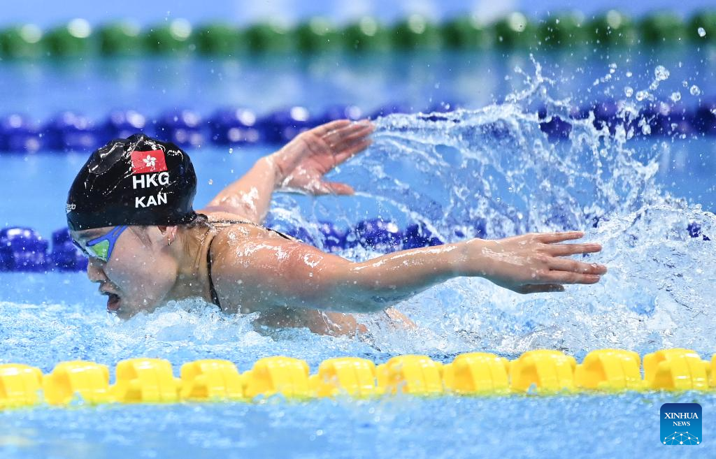 Kan Cheuk Tung Natalie of China's Hong Kong competes during the Women's 4x100m Medley Relay Final of Swimming at the 19th Asian Games in Hangzhou, east China's Zhejiang Province, Sept. 29, 2023. (Xinhua/Huang Zongzhi)