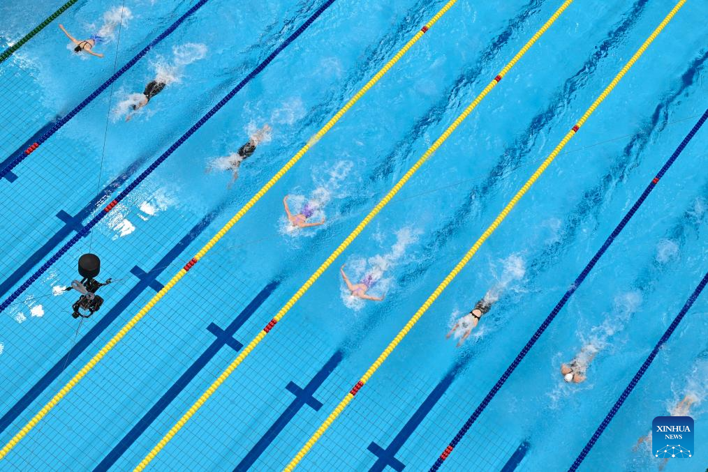 Li Bingjie (L) of China competes during the Women's 800m Freestyle Final of Swimming at the 19th Asian Games in Hangzhou, east China's Zhejiang Province, Sept. 29, 2023. (Xinhua/Xia Yifang)