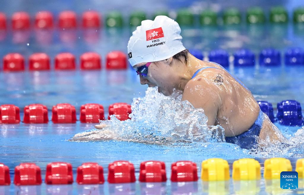 Haughey Siobhan Bernadette of China's Hong Kong competes during the Women's 4x100m Medley Relay Final of Swimming at the 19th Asian Games in Hangzhou, east China's Zhejiang Province, Sept. 29, 2023. (Xinhua/Huang Zongzhi)