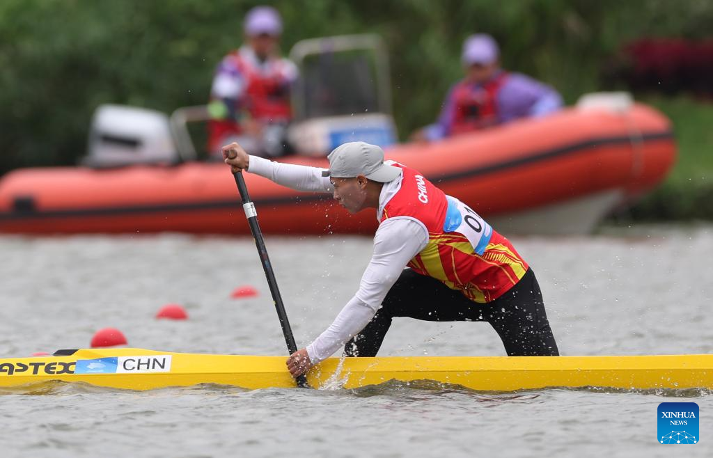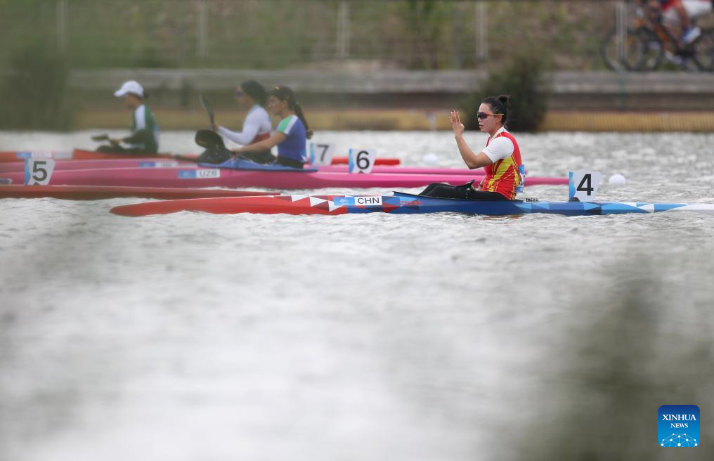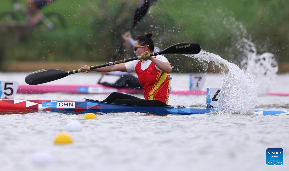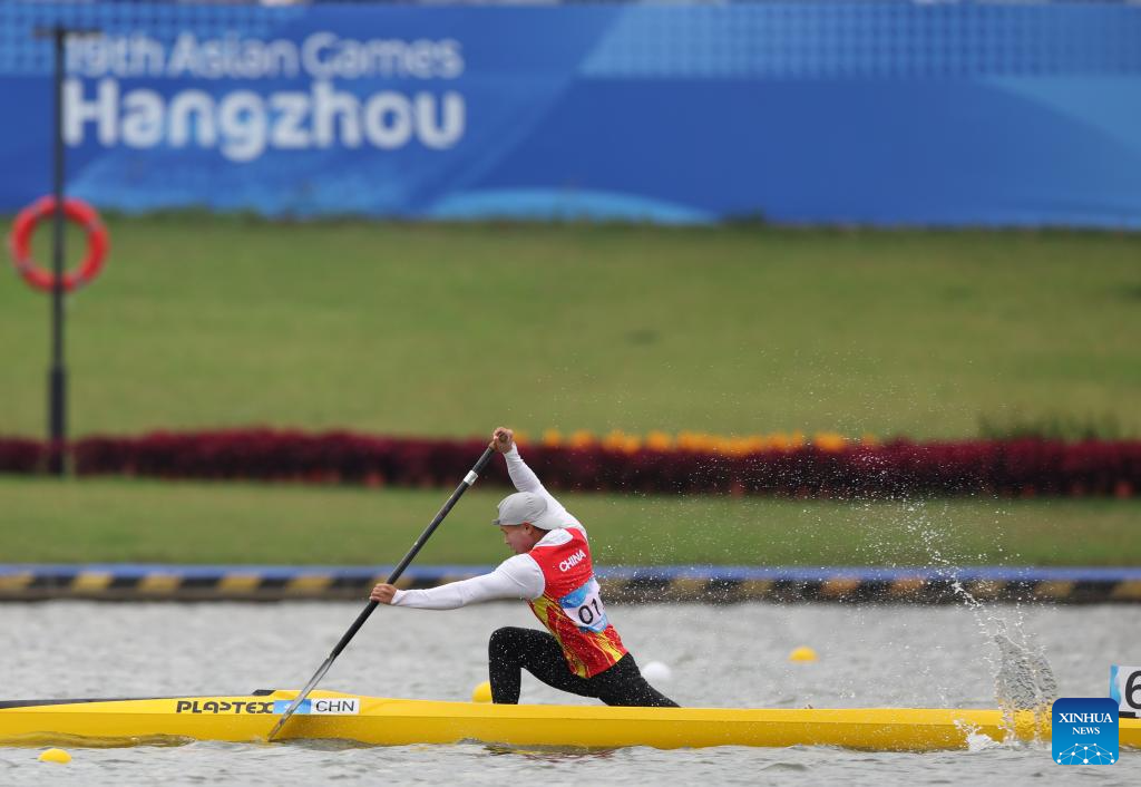 Lin Wenjun of China competes during Women's Canoe Single 200m Heat of Canoe Sprint at the 19th Asian Games in Hangzhou, east China's Zhejiang Province, Oct. 1, 2023. (Xinhua/Du Xiaoyi)