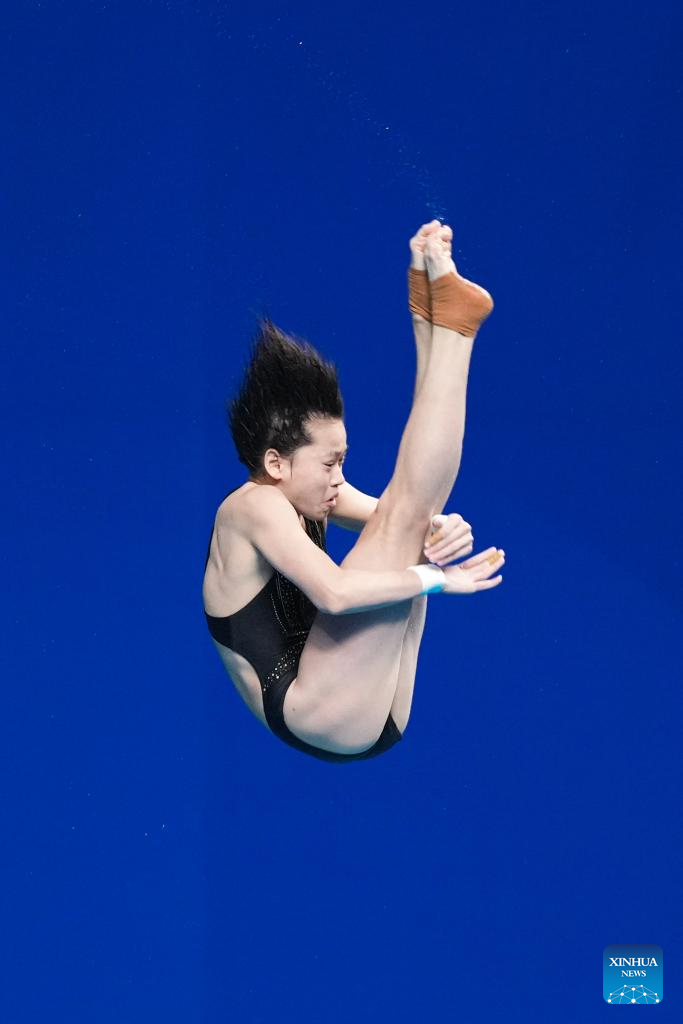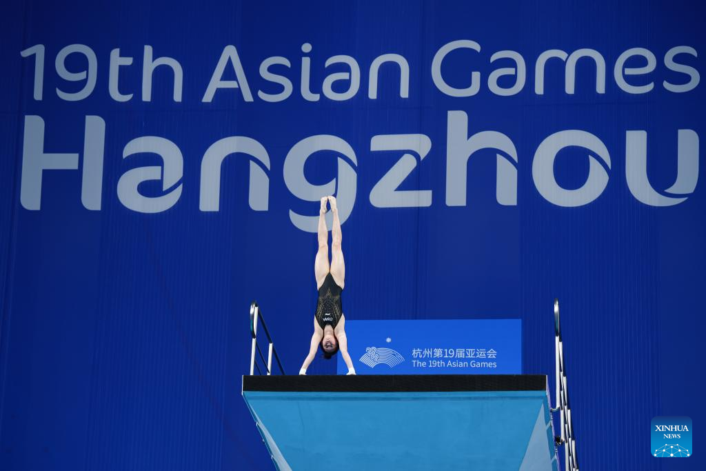 Chen Yuxi of China competes during the Women's 10m Platform Preliminary of Diving at the 19th Asian Games in Hangzhou, east China's Zhejiang Province, Oct. 3, 2023. (Xinhua/Du yu)