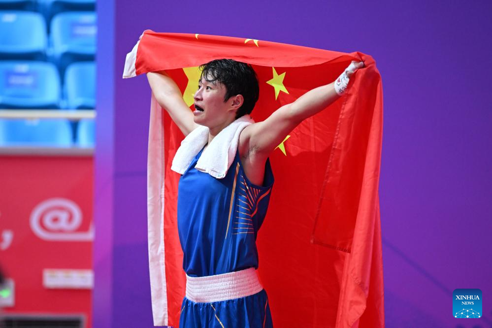 Having lost to India's Lovlina Borgohain in the semifinals of the World Championships in March, Li underlined her offense in the women's 75kg final and gradually got the bout under control en route to a unanimous decision win over her opponent.