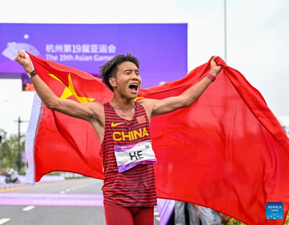 HANGZHOU, Oct. 5 (Xinhua) -- He Jie claimed China's first men's marathon title at the Hangzhou Asian Games here on Thursday.