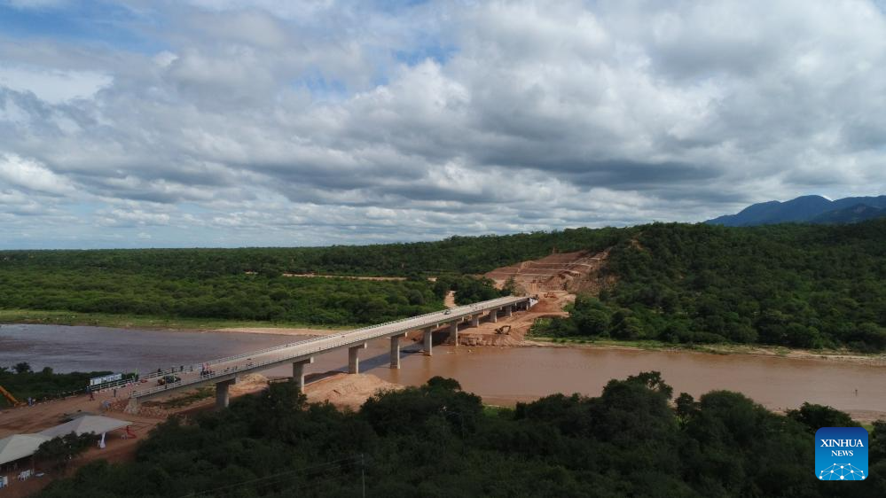 This aerial photo taken on Aug. 30, 2023 shows the Maputo Bay Bridge in Maputo, Mozambique. The bridge is part of the Maputo Bridge and Link Roads project built by the China Road and Bridge Corporation. (Xinhua/Yao Jinhong)