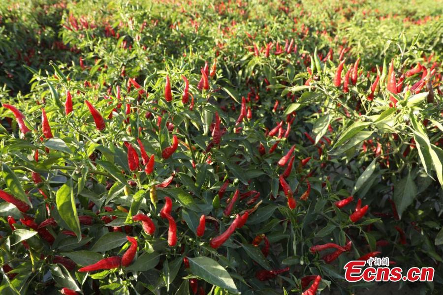 Red chili peppers enter harvest season at Xinjiang Production and Construction Corps, northwest China's Xinjiang Uygur Autonomous Region. (Photo: China News Service/Wang Wanjun)
