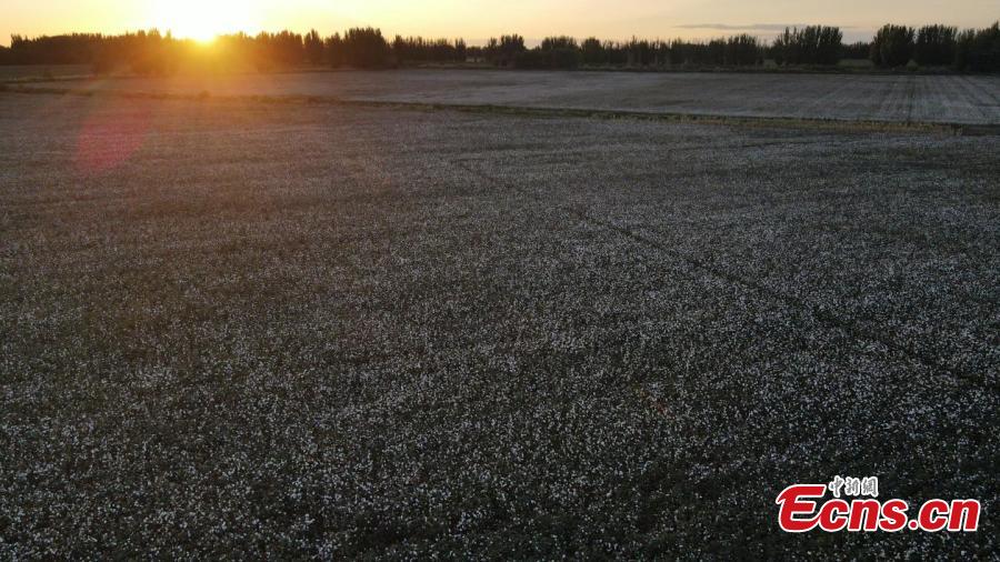 Sunset scenery of a cotton field at Xinjiang Production and Construction Corps, northwest China's Xinjiang Uygur Autonomous Region. (Photo: China News Service/Wang Wanjun)