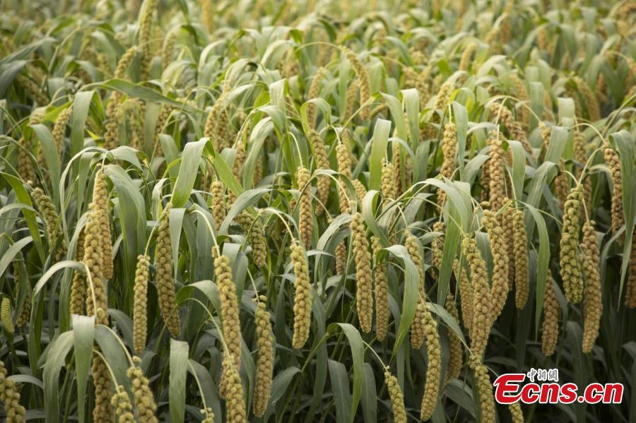 Millet crops harvest at Xinjiang Production and Construction Corps, northwest China's Xinjiang Uygur Autonomous Region. (Photo: China News Service/Wang Wanjun)