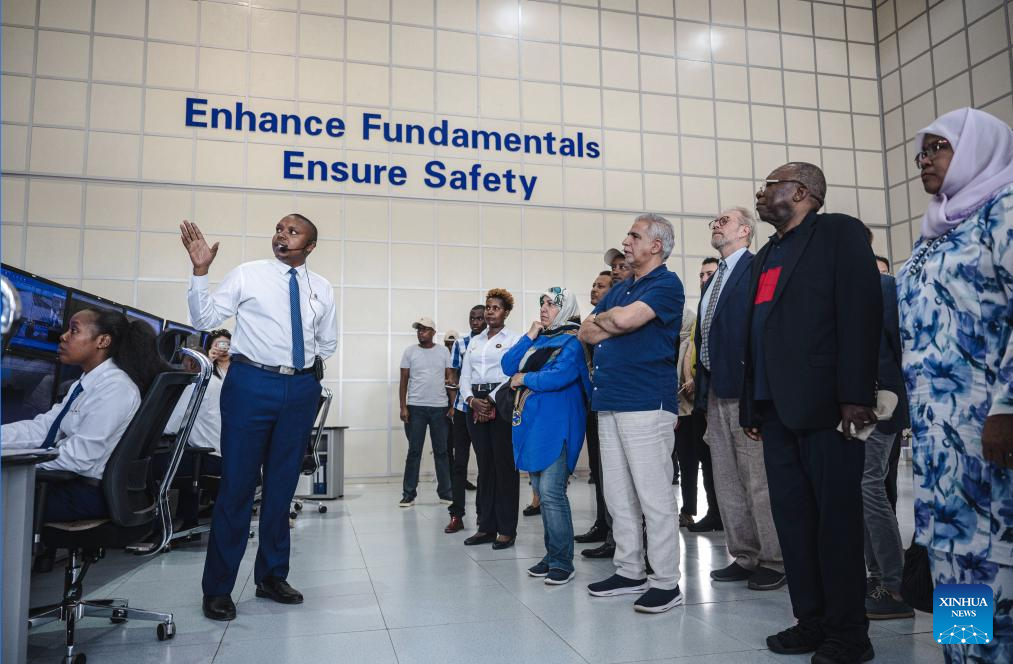The delegation of envoys visits the dispatch center at the Nairobi Station of the Mombasa-Nairobi Railway in Nairobi, Kenya, Oct. 6, 2023. (Xinhua/Wang Guansen)
